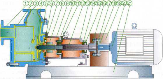 1. 泵體采用鑄鐵內(nèi)襯氟塑料(PTFE、FEP、PFA)整體燒結(jié)壓制而成,泵蓋、葉輪等過流部件采用金屬嵌件外包氟塑料(PTFE、FEP、PFA)整體燒結(jié)壓制而成;