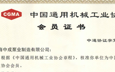 中國(guó)通用機(jī)械工業(yè)協(xié)會(huì)會(huì)員證書