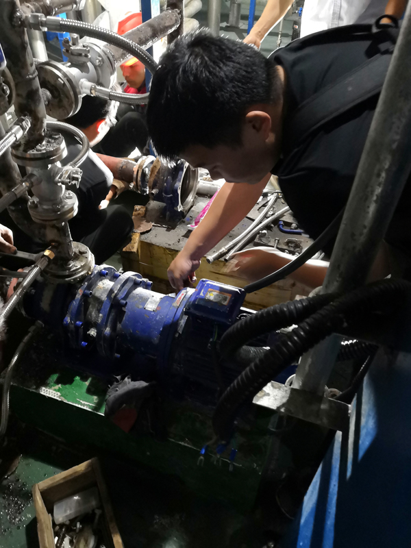 湖北當陽某化纖廠曾在我司采購多款泵型產品,因其采購數量較多,為了保障客戶的使用體驗,我司派遣兩位技術工程師前往客戶原廠進行調試指導。